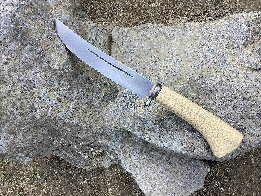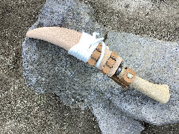 ●北海道二風谷地方のタシロ型を参照にして仕上げました。片刃仕上げ特有の裏スキを入れ切れ味を鋭くしています。